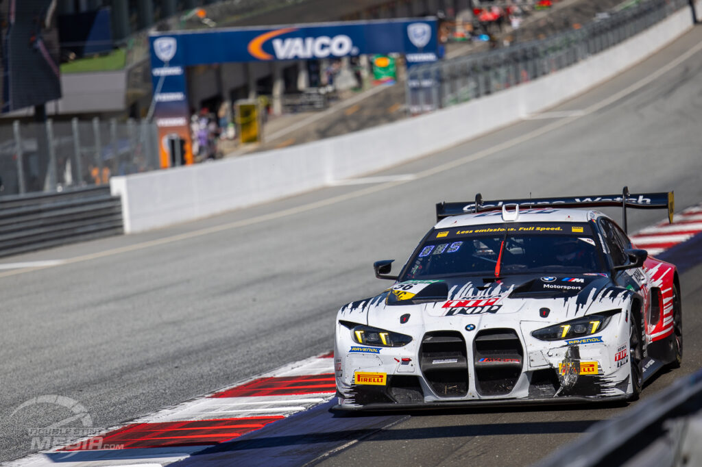 Das erste Qualifying des Wochenendes startet bereits um 8:15 Uhr. Am Ende ist es der LIQUI MOLY Lamborghini Huracán #63 mit Finn Zulauf der sich die Pole position schnappt (1:28.563 min.). Neben ihm in der ersten Reihe, Jamie Alon Day im Aston Martin #39 von Comtoyou Racing (1:28.583 min.). Dann Colin Bönighausen im razoon Porsche #41 (1:28.654 min.), vor Kiano Blum im HRT Mustang #2 (1:28.769 min.).