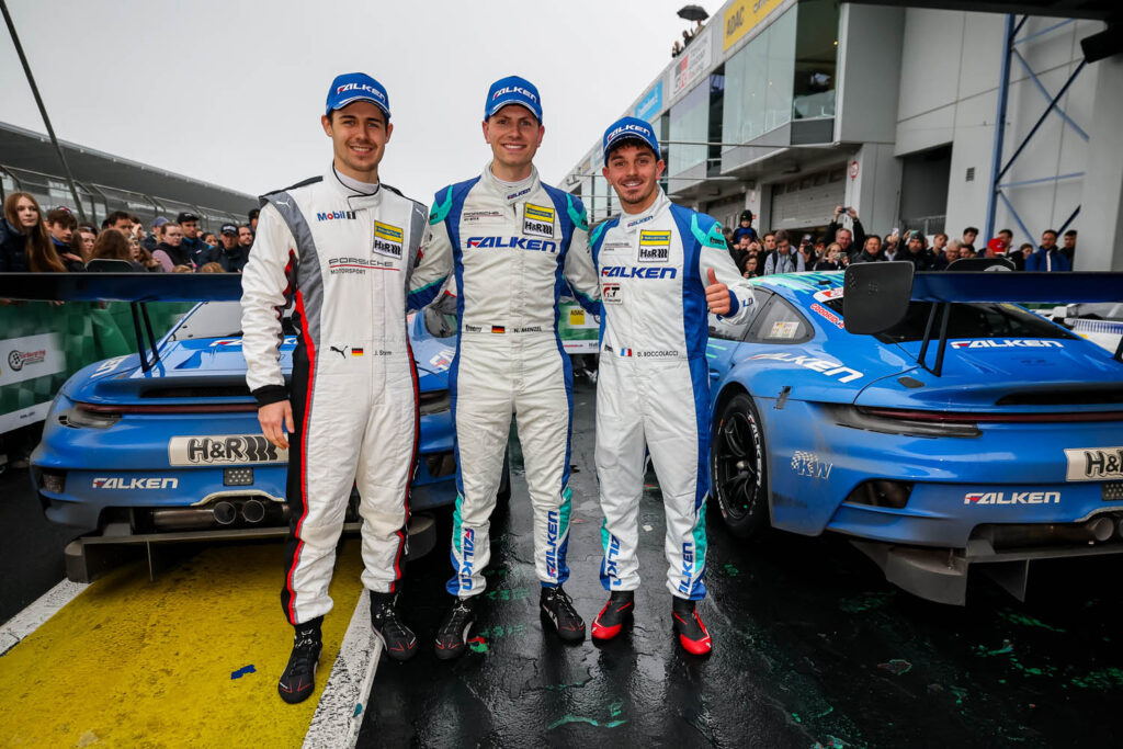 Dann kommt Boccolacci #4 sieben Minuten vor Schluss noch einmal über Start und Ziel, 27,5 Sekunden Vorsprung vor Menzel #3. Und so endet das letzte NLS-Rennen der Saison 2025 nach 25 Runden und 4:01:30.077 Stunden mit einem erneuten Doppelsieg der Falken Porsche. Nico Menzel und Dorian Boccolacci gewinnen in der #4, 22,281 Sekunden vor dem Schwesterauto #3 mit Nico Menzel und Joel Sturm. Dritte werden Frank Stippler und Vincent Kolb im HRT Mustang #6, vor den Teamkollegen Fabio Scherer und Patrick Assenheimer im Mustang #9.
