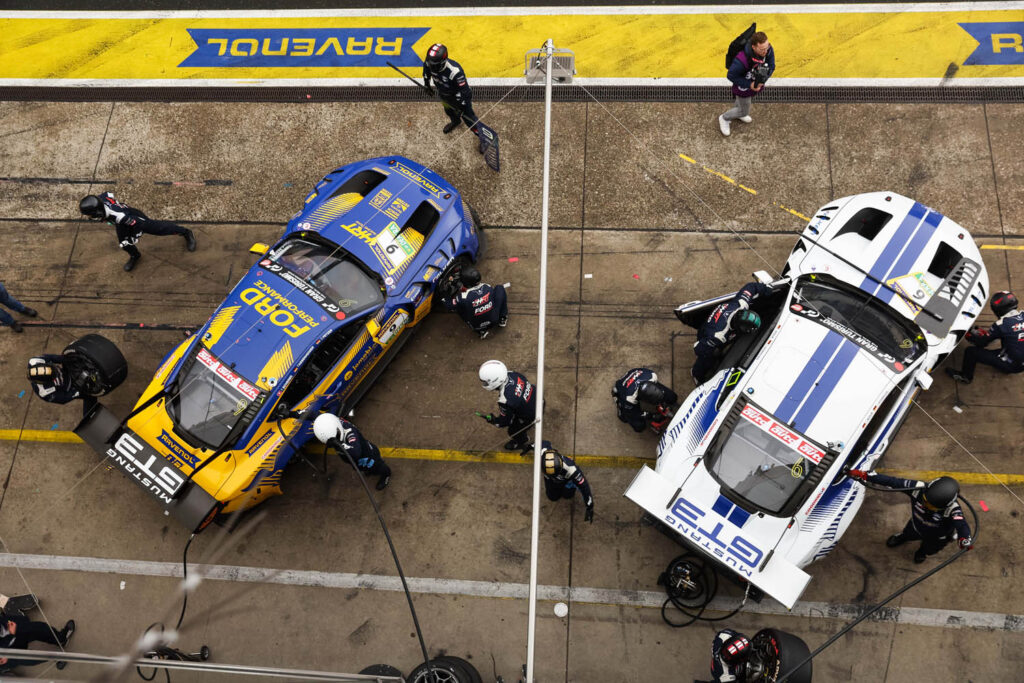 Nach eineinhalb Stunden führen die beiden Falken Porsche #4 vor #3, dann die Mustang #6 und #9. Bedingt durch die üblichen Boxenstopps wechseln die Positionen immer wieder.