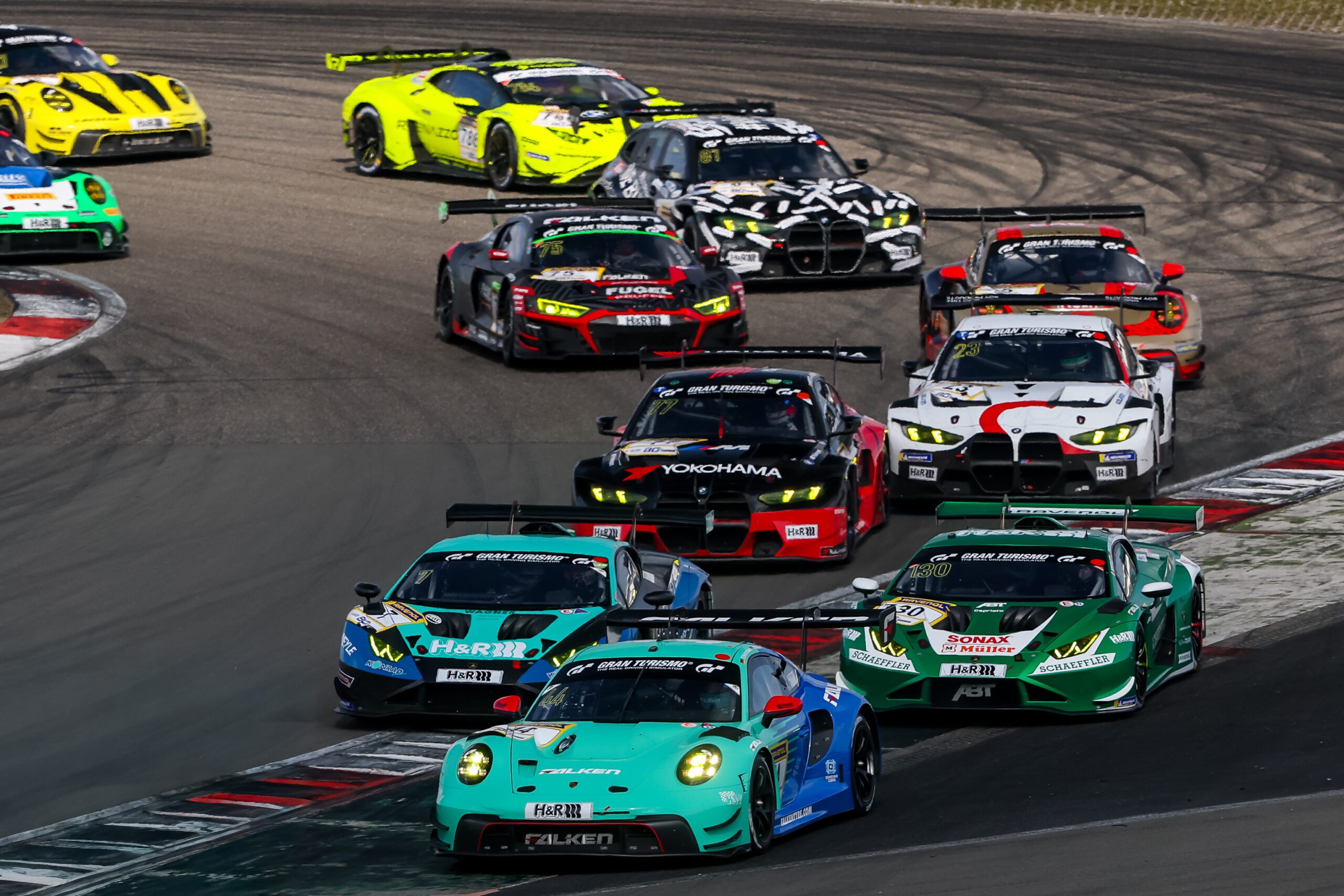 Nach erneuten Wechseln sitzt jetzt Jules Gounon im Auto #3 von Verstappen Racing, Dan Harper hat den BMW #99 von Jordan Pepper übernommen und Christian Krognes sitzt im Walkenhorst Aston Martin #34 auf Position drei. Auf den weiteren Positionen, #47 Tsuboi, #48 Dylan Pereira, #16 Christopher Haase, #44 Sven Müller, #17 Nico Menzel, #45 Thierry Vermeulen und #130 Luca Engstler im ABT Lambo auf P10.